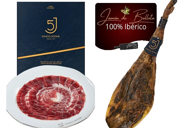 El auténtico Jamón 5J Cinco Jotas (Brida Negra) es 100% Ibérico de Bellota. Curado en Jabugo durante 5 años, ofrece el inconfundible sabor Pata Negra. Calidad premium garantizada.
