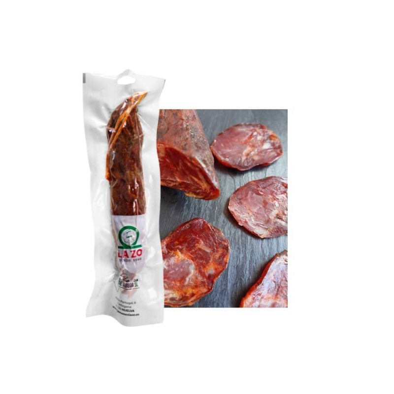 The Salchichón Iberian Bellota de Presa from LAZO (400/450g approx.) is a superior quality sausage that reflects the excellence of Iberian tradition. Made with meat from the noble Iberian Presa cut, it comes from pigs raised free-range and fed with Bellota during the Montanera. Its balanced blend of lean meat and selected spices enhances an intense aroma and unique flavor, offering an authentic gastronomic experience.