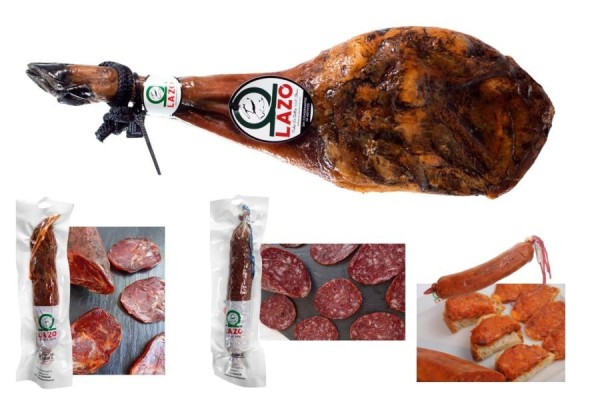 Iberian Bellota 50% Ham Set: 5-Piece Gourmet Assortment. Great assortment of products artisanally crafted in Cortegana. Includes a Bellota 50% Iberian Ham (8-9 Kg) and a Bellota 100% Iberian Loin, along with Chorizo, Salchichón, and Morcón. Presented in a gift case.