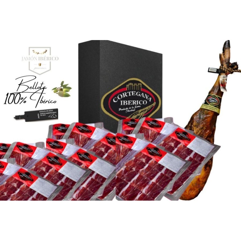 The Sliced Bellota 100% Ibérico Pata Negra ham represents the highest excellence and purity. Coming from 100% Ibérico pigs raised in freedom and fed exclusively on acorns during the montanera, this product is a true gourmet treasure.