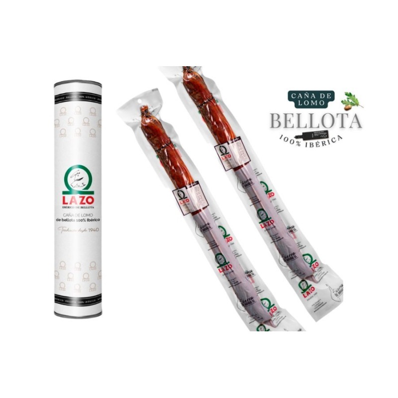 Este Bote Gourmet de LAZO contiene 2 Cañas Lomo Bellota 100% Ibérico (1 Kg aprox. c/u). Procedente de cerdos alimentados con bellotas en montanera, cada pieza tiene una curación de 3 meses y es conservada en aceite dentro del estuche de lata. Es un homenaje a la tradición DOP Jabugo, ideal para regalo, elaborado con lomo, pimentón, dextrosa, ajo y orégano.