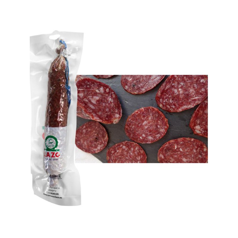 El Salchichón Ibérico Bellota de Presa de LAZO (400/450g aprox.) es un embutido de calidad superior que refleja la excelencia de la tradición ibérica. Elaborado con carnes de la noble Presa Ibérica, proviene de cerdos criados en libertad y alimentados con Bellota en la montanera. Su mezcla equilibrada de magro y especias seleccionadas realza un aroma intenso y un sabor único, ofreciendo una experiencia gastronómica auténtica.