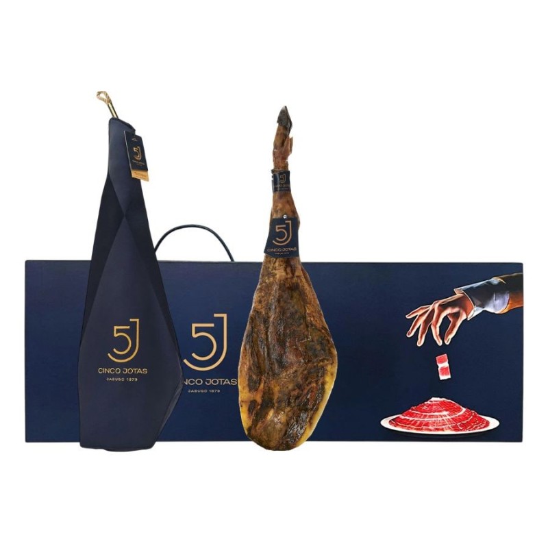 El auténtico Jamón 5J Cinco Jotas (Brida Negra) es 100% Ibérico de Bellota. Curado en Jabugo durante 5 años, ofrece el inconfundible sabor Pata Negra. Calidad premium garantizada.
