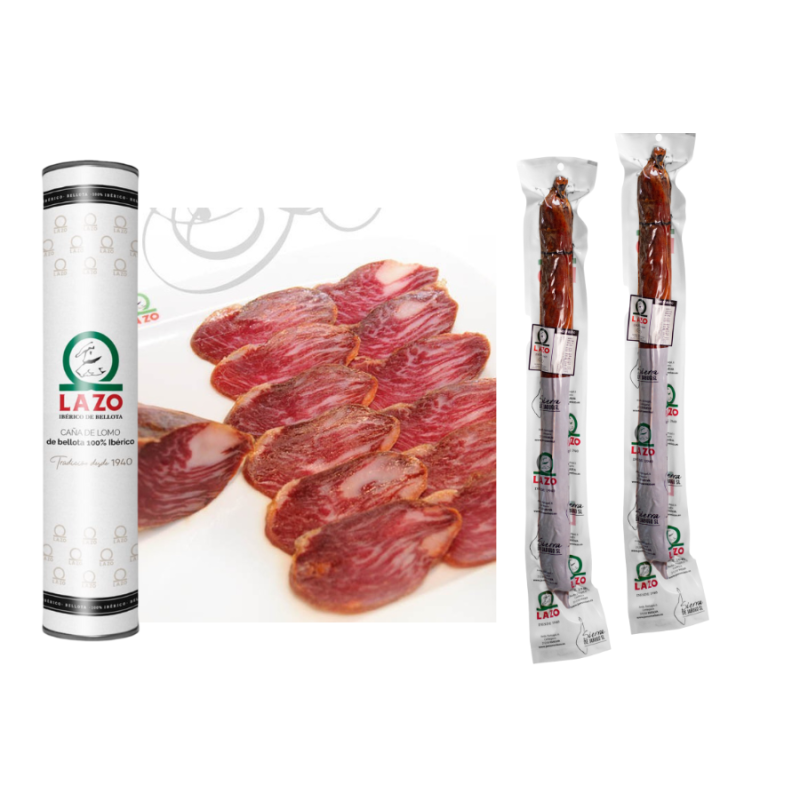 Ce Pot Gourmet LAZO contient 2 Cañas Lomo 100% Ibérique Nourri aux Glands (1 Kg env. ch.). Issu de porcs nourris aux glands pendant la Montanera, chaque pièce a une maturation de 3 mois et est conservée dans l'huile à l'intérieur de l'étui en boîte. C'est un hommage à la tradition DOP Jabugo, idéal comme cadeau, élaboré avec longe, paprika, dextrose, ail et origan.